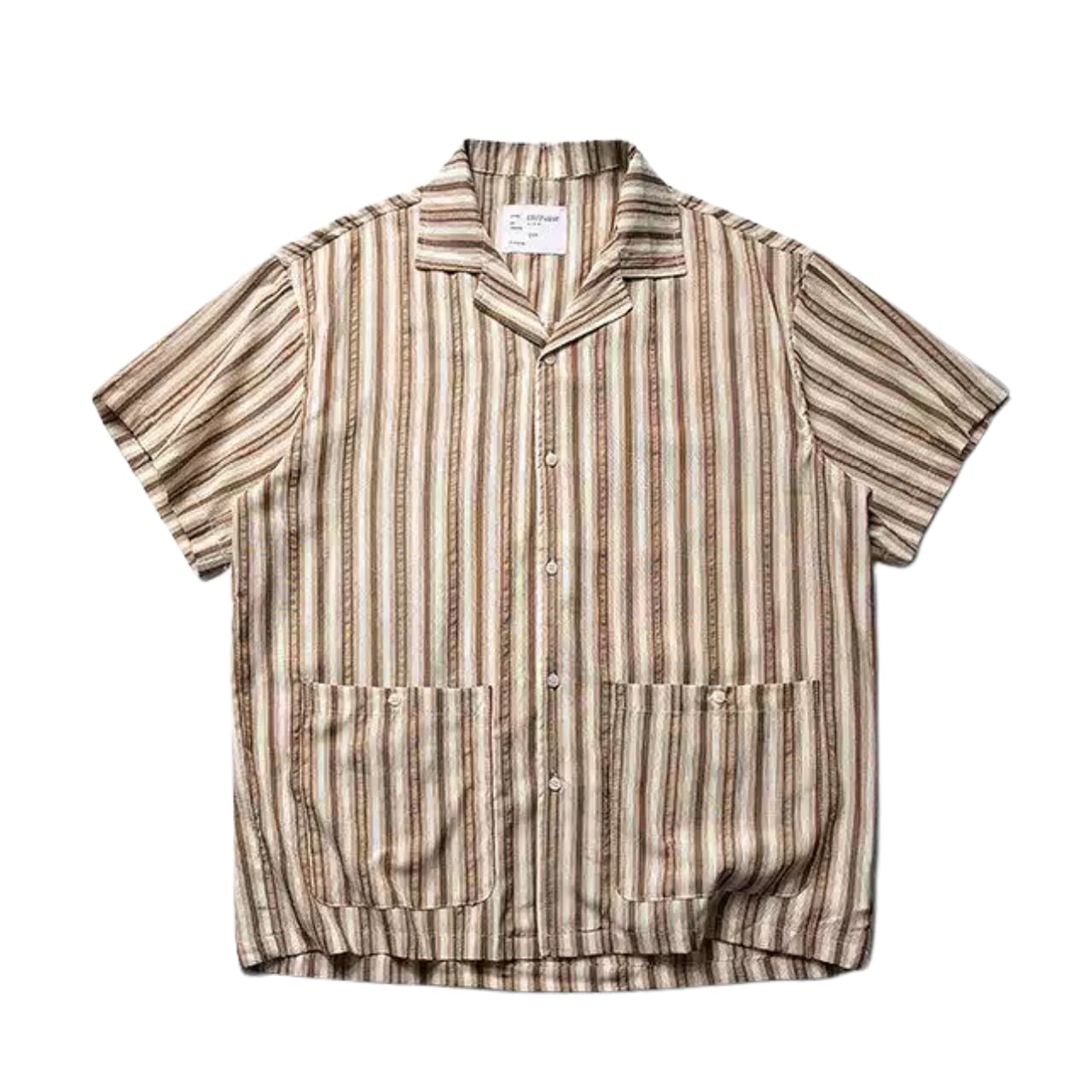 3色展開のマルチストライプオーバーシャツは、着るだけで季節感と洒落感をプラス。