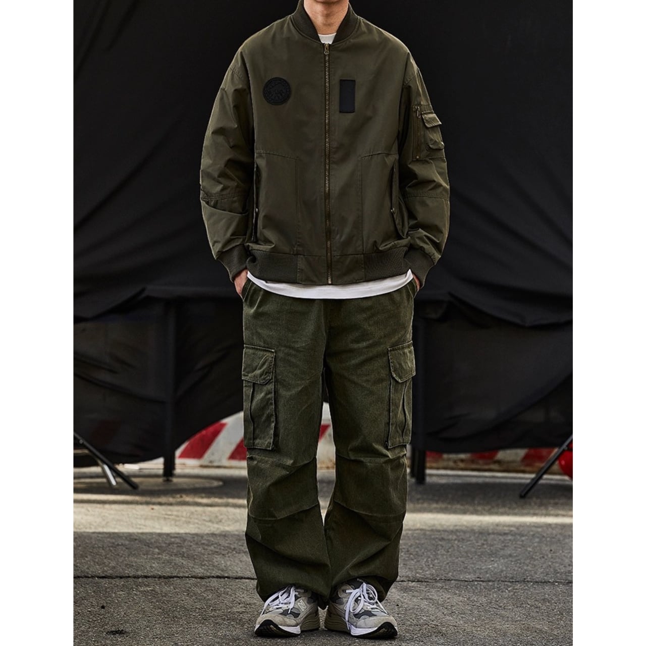 トラックパンツやカーゴパンツなどのカジュアルスタイルに良く合います。