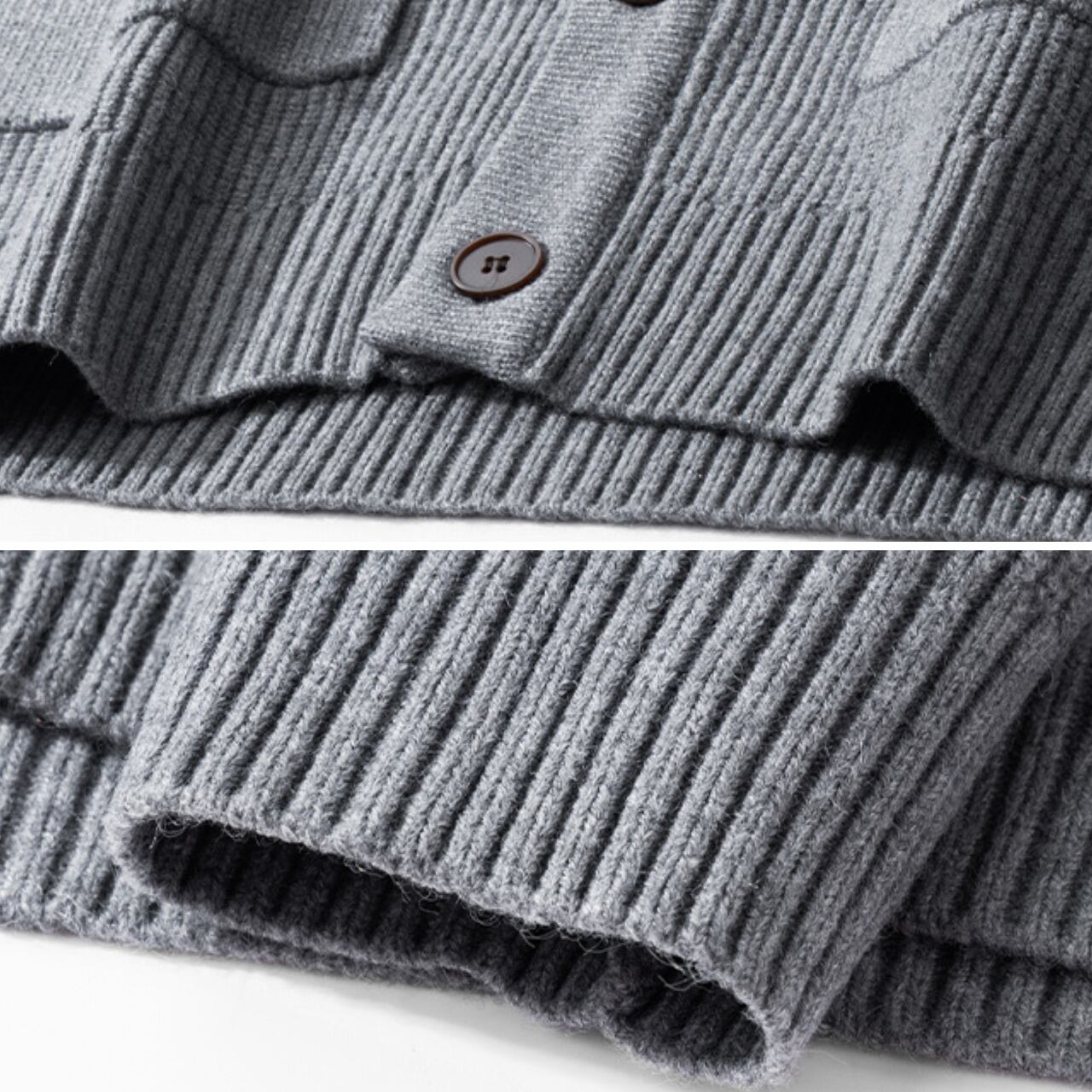 リラクシーでスタイリッシュなVネックリブニットカーディガン。